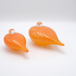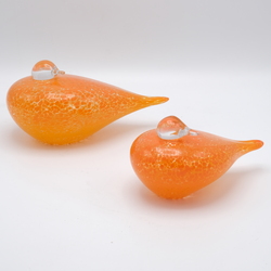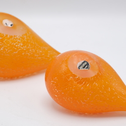 | Omschrijving | Lot van twee 20e eeuwse design glazen oranje vogels. Eén met sticker Pfeiffer Brilliant Kristal, Nederland. |