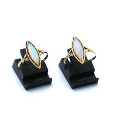 Twee 14 karaats geelgouden damesringen bezet met ovale opaal