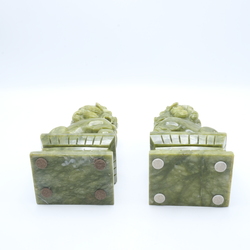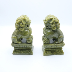 Lot van twee groen stenen Chinese sculpturen, tempelleeuwen. 20 cm hoog