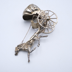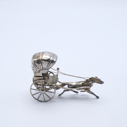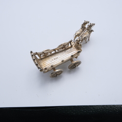 | Omschrijving | Lot van twee tweede gehalte (835/1000) Nederlands zilveren miniaturen: hooiwagen met twee paarden en kleine koets met één paard |