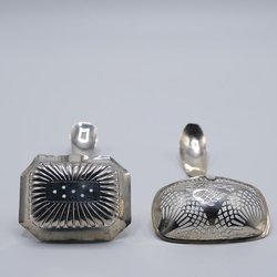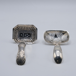 Twee zilveren suikerstrooiers, resp.een empire en een biedermeierer model.