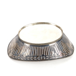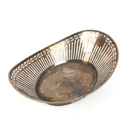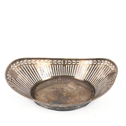 | Omschrijving | Een 20e eeuwse ajour gezaagde verzilverde broodmand, schuitvormig model, versierd met parelrand. Gemerkt 'Zilvapleet'. |
