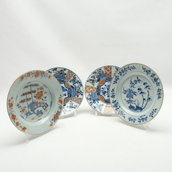 | Omschrijving | Lot van vier 18e eeuwse Chinees porseleinen borden, drie imari en een blauw-wit |