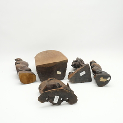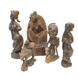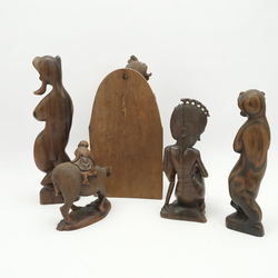 | Kavel | 1168. Vijf houtsnijwerken sculpturen, waaronder vier Indonische |