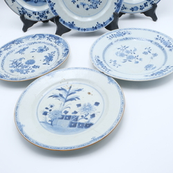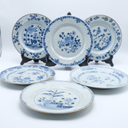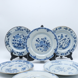 | Omschrijving | Zes Chinees porseleinen schotels, blauw/wit floraal beschilderd, vijf diepe exemplaren, Qianglong periode. Ca 1750 |