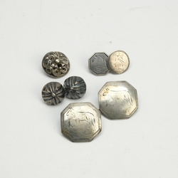 | Omschrijving | Lot van zeven 18e/19e eeuwse zilveren knopen, o.a. met afbeelding van koe en twee gemerkt Amsterdam |