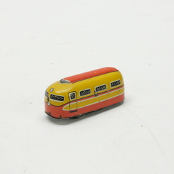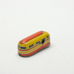 | Omschrijving | Lot van twee stuks divers: een tweede gehalte zilveren tafelaansteker met Rembrandtvoorstelling en een speelgoedbus, gemerkt Made U.S. Zone Germany. |