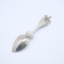 | Omschrijving | Een antieke vroeg 20e eeuwse tweede gehalte (835/1000) zilveren geboortelepel met bekroning van ruiter te paard. Inscriptie 'Jarig Anske Smit is geboren den 30 april 1904'. Mr. A.M. Sustring, Sneek/Leeuwarden (1873-1922) |