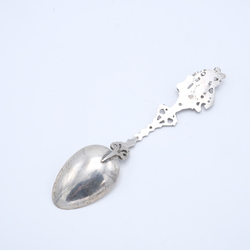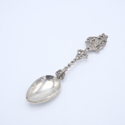 | Omschrijving | Een vroeg 20e eeuwse tweede gehalte (835/1000) zilveren geboortelepel met getorste steel en steelbekroning van de Hollandse Maagd. Mr. A.M. Sustring, Sneek Leeuwarden (1873-1925) '. Met inscriptie 'Fetje Smit is geboren 17 maart 1907' |