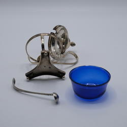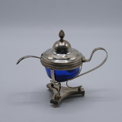 | Kavel | 1473. Zilveren mosterdpot en lepel |