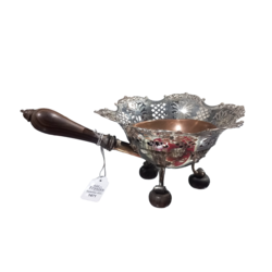 Zilveren pijpcomfoor, geplaatst op drie bolpootjes en met greep.