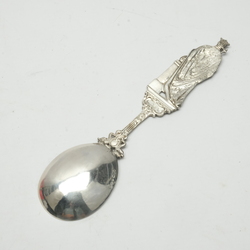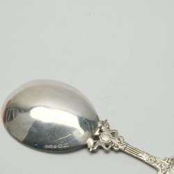 | Omschrijving | Een eerste gehalte (925/1000) zilveren sierlepel bekroond met afbeelding van Richard I, Koning van Engeland en aanvoerder van de kruistocht in de 12e eeuw. Gekeurd met pseudokeuren, '925' en meesterteken 'B.M.M' |