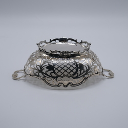 Zilveren soezenmand, versierd met zaagwerk.