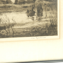 | Omschrijving | Lot van twee etsen. Eén ets met voorstelling van visser bij fuik, getiteld 'Eernewoude'. Rechtsonder gesigneerd Abe Gerlsma (Franeker 1919-2012). Eén ets met voorstelling van stadscentrum en molen op de achtergrond, getiteld 'De Syl Dokkum'. Rechtsonder gesigneerd Abe Gerlsma. |