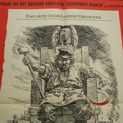 | Omschrijving | Affiche, spotprent uit het Engelse tijdschrift Punch: 'the new law', thou shalt have no other god but me'. Gesigneerd Partridge, 1942 |