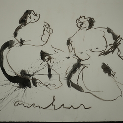 | Omschrijving | Lot van twee werken op papier. Een met voorstelling van Christus, de ander met twee dames. Beide gesigneerd Anton Heyboer (Sabang 1924 - Den Ilp 2005). |