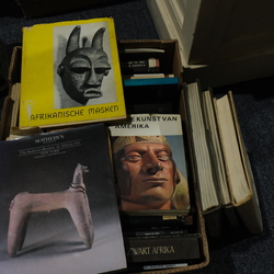 Een collectie kunstboeken over Afrikaanse en Zuid Amerikaanse kunst.