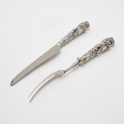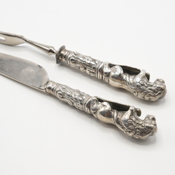 | Omschrijving | Een 18e of 19e eeuws eeuws couvert, de heften in de vorm van een leeuw met schild. |