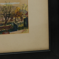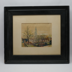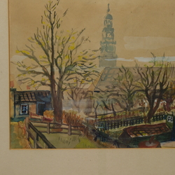 Aquarel op papier, stadsgezicht. Rechtsonder gesigneerd 'Depla'