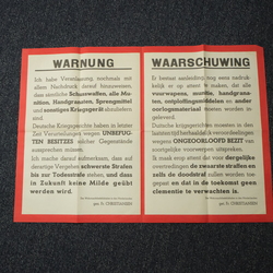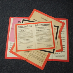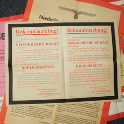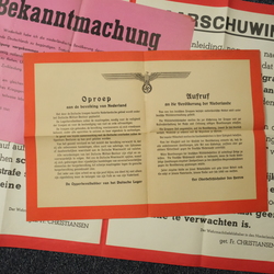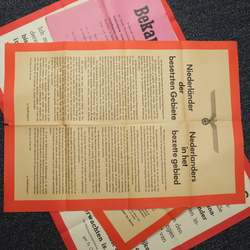 | Omschrijving | Lot met diverse affiches, o.a. 'Nederlanders in het bezette gebied', Seys-Inquart 29 mei 1940, 'Oproep aan de bevolking van Nederland' door de opperbevelhebber van het Duitse leger en diverse waarschuwingen en bekendmakingen |