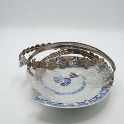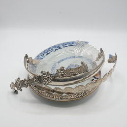 Lot van drie schalen met zilveren beugel. Twee met ruiterknopen.