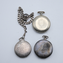 | Kavel | 2244. Drie zakhorloges, 2x zilver en sterling zakhorlogeketting |