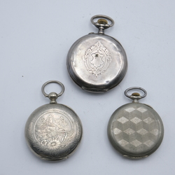 | Omschrijving | Lot van drie herenzakhorloges: een antiek 19e eeuws derde gehalte (800/1000) zilveren zakhorloge, en zakhorloges met opschrift ' Luzerne Watch Co' & 'Jerome Feyen Stabroeck' |