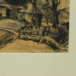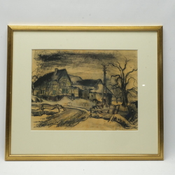 | Omschrijving | Een houtskooltekening gemengde techniek. Voorstelling een boerenhoeve met paarden. Gesigneerd Fons Volders 1947 (Meerrsen 1894- Sittard 1974). Gelijst. |