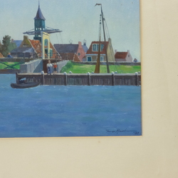 | Omschrijving | Schilderij, olieverf op board/papier. Gezicht op Hindeloopen vanaf het water. Rechtsonder gesigneerd Frans Hartman (Den Haag 1908-1975), gedateerd 1953 |