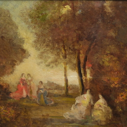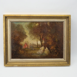 | Omschrijving | Schilderij, olieverf op paneel. Dames in jurken in het bos. Rechtsonder gesigneerd N. Diaz |