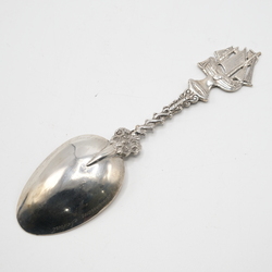 | Omschrijving | Een 19e eeuwse geboortelepel met bekroning van zeilschip. Met inscriptie: Klaas Nammers Schat is gebooren te Wierde 25 maart 1855 'in 1855 A.A.B. 1847'. |