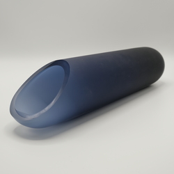 | Omschrijving | Een blauw cilindervormig glazen design object, onduidelijk gesigneerd, Leerdam. |