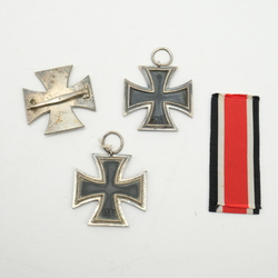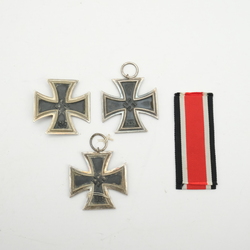 | Omschrijving | Lot van drie Ijzeren kruizen: Eén eerste klas, 1939, met lint en twee tweede klas, 1939, met hangoog |
