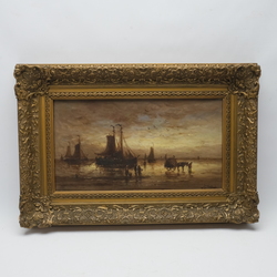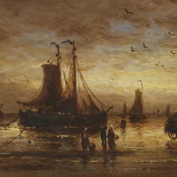 | Omschrijving | Schilderij, olieverf op doek. Voorstelling van bomschuiten en schelpenvissers op het strand van Katwijk. Rechtsonder gesigneerd J. Verbeek. |