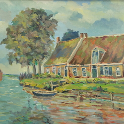 | Omschrijving | Schilderij, olieverf op doek. Boerderij aan het Damsterdiep. Ongesigneerd werk van J.A. van Royen, ca. 1940. |