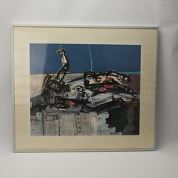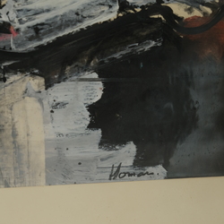 | Omschrijving | Gemengde techniek. ‘Slachtoffers’. Rechtsonder gesigneerd Jan Homan (Hoorn 1919 – Arnhem 1991). |