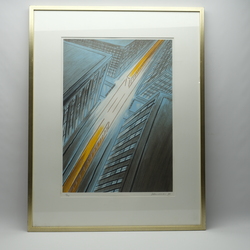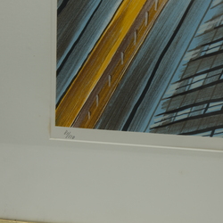 | Omschrijving | Zeefdruk. Abstracte voorstelling, ‘gele tram’. Rechtsonder gesigneerd Jeroen Henneman (Haarlem, 1942) en gedateerd 1990. Oplage 81/120. |
