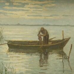 | Omschrijving | Een schilderij olieverf op doek. Landschap met fuikenvisser in boot. Titel de fuiken lichter. Gesigneerd Leonard Pieter Versteeg (Waalwijk 1901-Hilversum 1993). Gelijst. |
