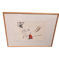| Omschrijving | Een litho/steendruk. Moderne voorstelling met de titel: "Herald". Eigendruk. Gesigneerd met potlood. Auke de Vries (Bergum 1937). |