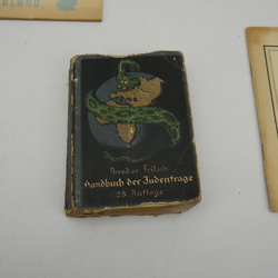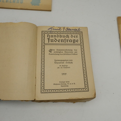 | Omschrijving | Lot diverse boeken, antisemitisme, o.a.: De Jodenspiegel, Jodendom en antisemitisme in de werelgeschiedenis' door E.V. von Rudolf, uitgegeven door Volksche Uitgeverij Westland - Amsterdam 1943'. 'Geopolitik im Kartenbild herausgegeben von Luftwaffenführungsstab Ie VIII, 'Die Juden'. En 'Handbuch der Judenfrage', Theodor Fritsch, 28. Auflage, 1919 |