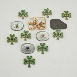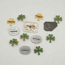 | Omschrijving | Lot diverse Winterhulp spelden: 8 groen emaille collectantenspelden met opschrift 'WHN', periode 1940-1942, drie Duitse Winterhilfswerk spelden in de vorm van oude Germaanse schilden uit de Steentijd, gemerkt 'Swebisch 1.Jahrh.V.D.Ztr' en één plastic speldje met voorstelling van de Gelaarste Kat, Winterhulp 1940 |