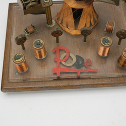 | Omschrijving | Een jaren '50 model spoel uit winkel, op houten met plexiglazen voet en opschrift 'Pope' |