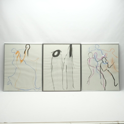 | Omschrijving | Set van drie kunstwerken, gemengde techniek op papier. Voorstelling van figuren. Allen rechtsonder gesigneerd Nelly Zandberg (Leeuwarden, 1968) en gedateerd 1997. |