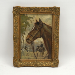 | Omschrijving | Schilderij, olieverf op doek/marouflé in vergulde ornamentenlijst. Concours-hippique in de Prinsentuin Leeuwarden. Linksonder gesigneerd Piet Hein van Asperen (Harlingen 1895 - Leeuwarden 1969). |
