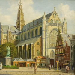 | Omschrijving | Schilderij, olieverf op doek in vergulde ornamentenlijst. Gezicht op de St. Bavo te Haarlem. Rechtsonder gesigneerd P.J.A. Wagemans = Pieter Johannes Alexander Wagemans (Den Haag 1879–1955) |
