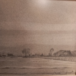 | Omschrijving | Potloodtekening. Gezicht op Ijlst. Onduidelijk gesigneerd, gedateerd 1981. |