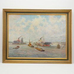 | Omschrijving | Schilderij, olieverf op doek. Schepen in de haven. Rechtsonder gesigneerd Rorgans, gedateerd 1941. |