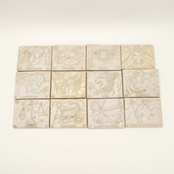 | Omschrijving | Set van twaalf aardewerken geglazuurde tegels met afbeeldingen van sterrenbeelden. Allen gemerkt “Tegelsche Keramiek”, ontwerp Adriaan van der Plas (1899-1974), ca. 1937. |
