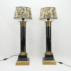 Lot van twee zuilvormige lampen, Empire stijl, met stoffen kappen