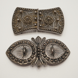 Lot van twee antieke 19e eeuwse zilveren gespen, filigrain versierd.